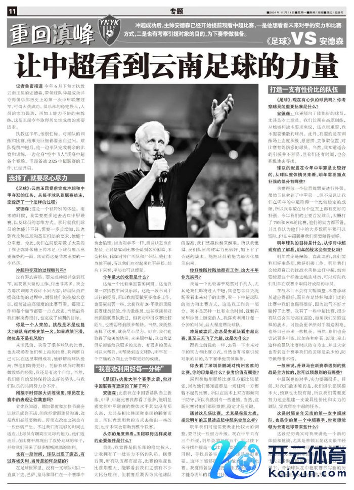 ◆这是时隔多年云南的第一支中超球队,亦然你的第一个中超赛季,你但愿能够为云南足球带来些什么?