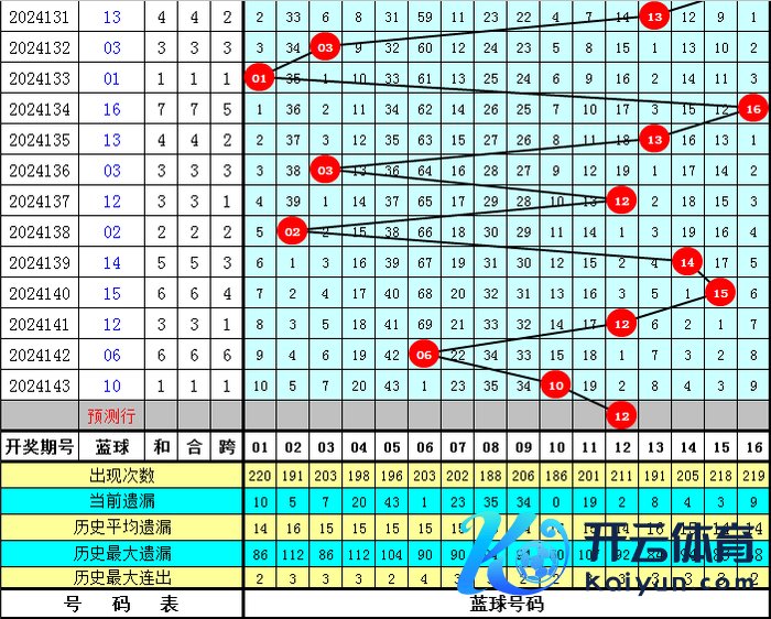 蓝球周日主要开出0路和1路奖号,出现概率为90%,2路蓝球出现相对较少。
