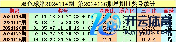 双色球在第2024114期-第2024126期周日开奖中,红球奇偶比累计为14:16,基本握平;红球质合比累计为11:19,与表面比基本极度;红球三区比累计为8:10:12,红一区号码走势较冷,红三区奖号走势相对较热。