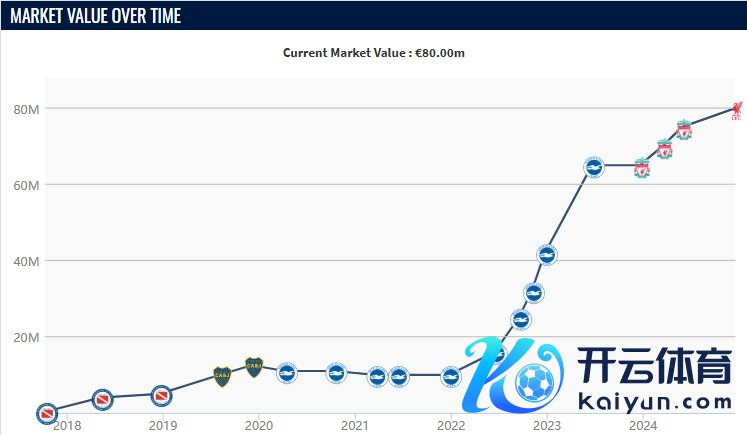 德转更新英超球员身价,25岁的麦卡利斯特最新身价已来到8000万欧。